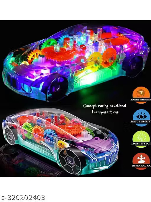 3D Transparent Car with 360 Degree Rotation Gear Simulation Mechanical Car With Light & Sound